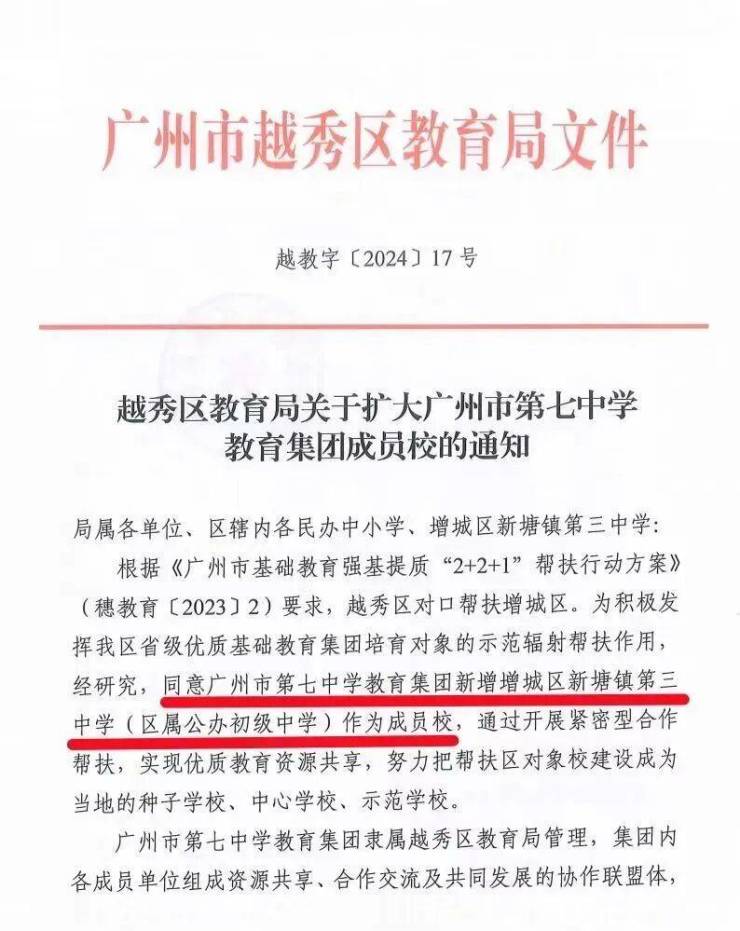 目前对口的新塘三中加入增城广附教育集团,新塘三中纳入增城广附教育集团后,相信增城广附中学的这些优质教育资源也将被新塘三中所共享。