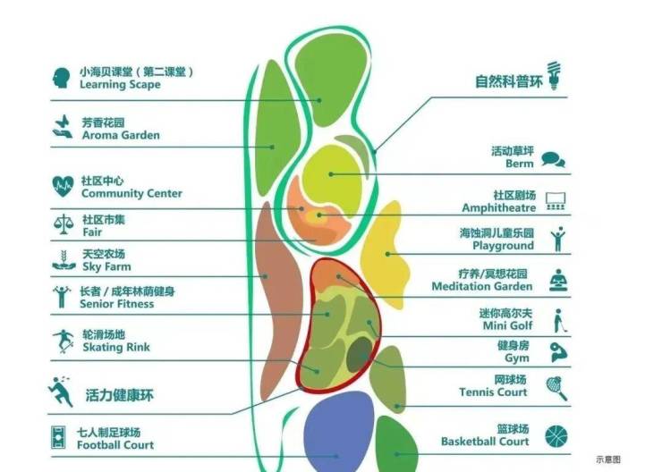 拥有超30万方绿化,15万方的空中公园+15万方的小区园林,其中空中园林含海贝社区中心、海贝活力馆、海浪农场、海蚀洞乐园等;