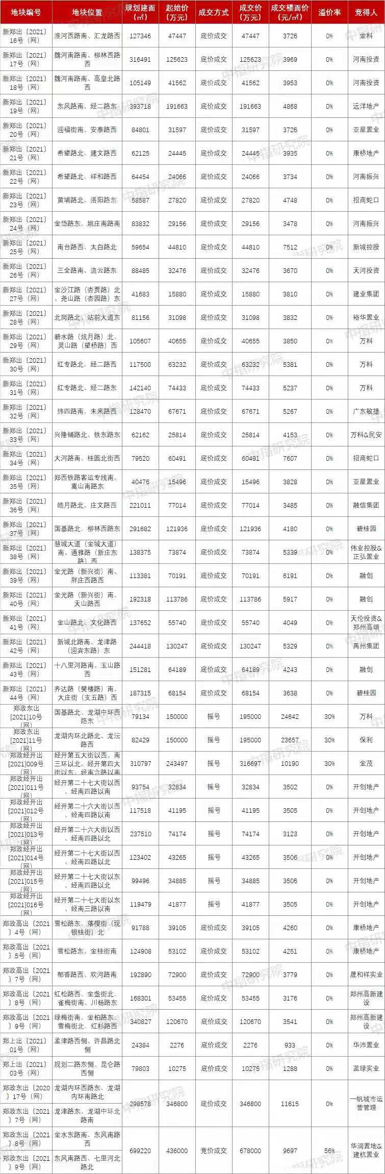 郑州首批集中供地成交情况一览