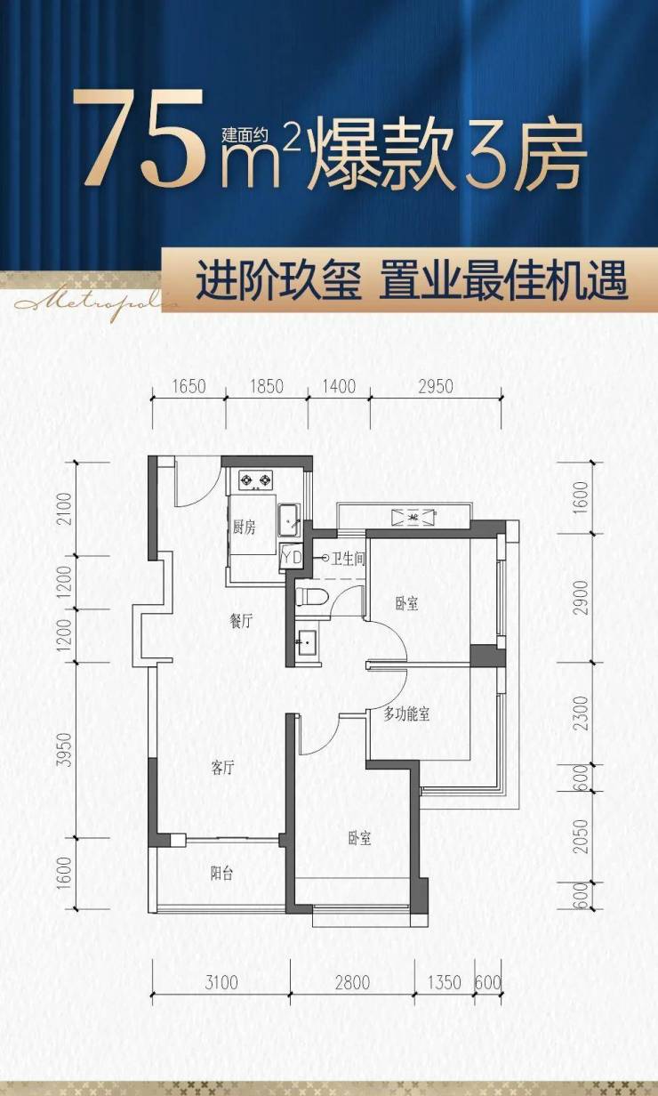 【12栋——首开景观楼王,3梯5户,四房首推劲销9成,居住舒适度超高】建面约75-97㎡全能三房【新品户型鉴赏】
