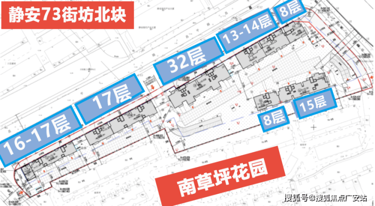 73街坊共分为南北两块,是老静安为数不多的纯住宅地块,北地块的高层住宅部分共将新建5栋8层至32层的住宅楼,总住宅开发体量共约7.25万㎡,总套数仅有468套。