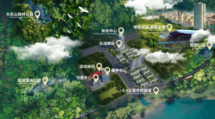 项目总规划面积约13万方,集商务、办公、居住于一体,涵盖商务中心、乐活商业、邻里中心、康养医疗、运动休闲等约4万方全维配套。