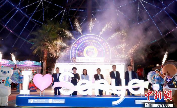 启动仪式当晚,“我爱三亚”主题装置在仪式举办地三亚海昌揭幕点亮。当天恰逢三亚海昌3周年庆典,现场设置了各类主题活动,大型户外新春季主题夜光巡游登场,形成了一波开局小高潮,让现场观众体验了“潮玩在三亚”。