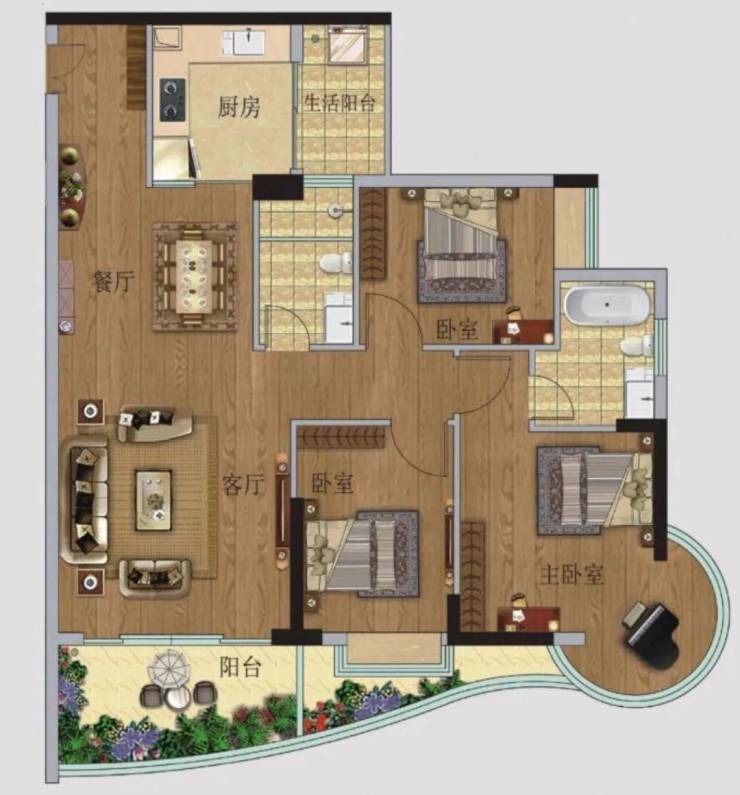 06户型【107房 3 房 2卫】环幕江景