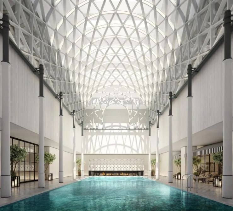 31万方综合体的业态组合堪称商业教科书——希尔顿酒店提供稳定的高端客群流量,高端商业则形成消费闭环。对比奥体印象城8-12元/㎡/日的租金水平,项目自带的商业引擎将直接拉升资产收益率。更令人惊叹的是其装标配置:1.8万/㎡的V-ZUG厨电11件套,相当于将贝克汉姆伦敦豪宅的厨房整体搬迁;意大利卡拉拉白大理石的运用,则与卢浮宫地面选材形成跨时空对话。