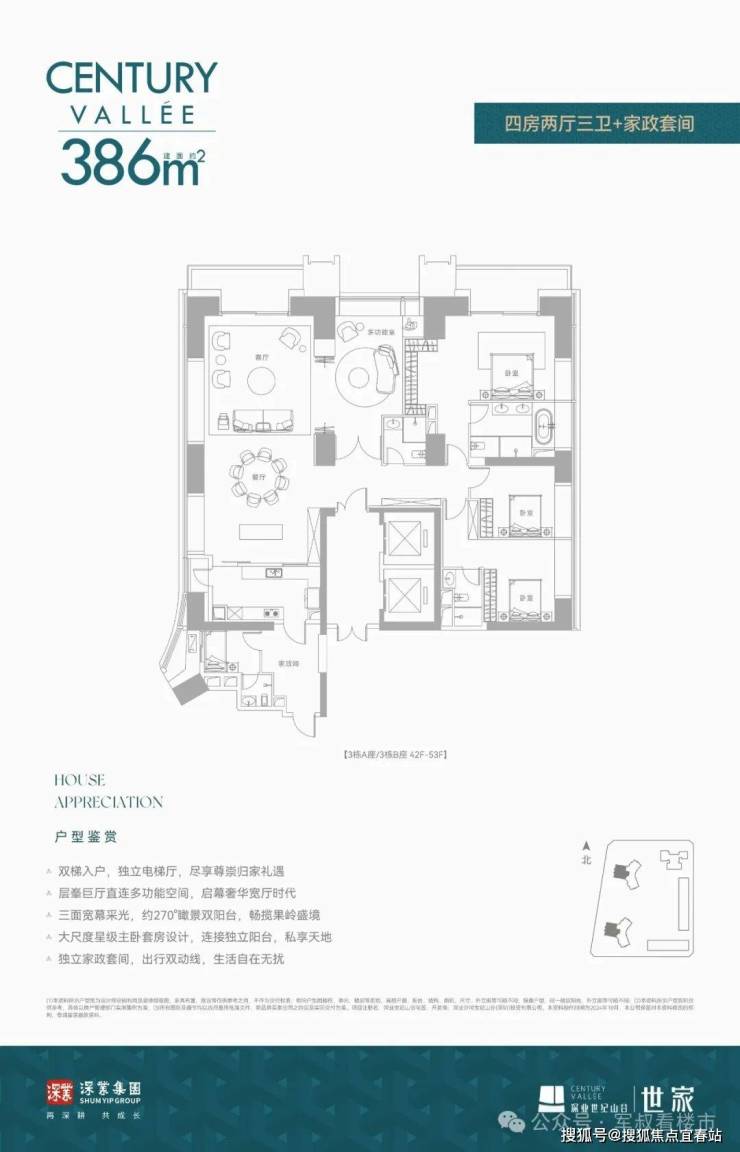 深业世纪山谷·世家建面约233-280-386m²纯粹大平层豪宅户型,约270°阔景视野,三面阔尺采光,举目壮丽风景,拥揽自然诗意。