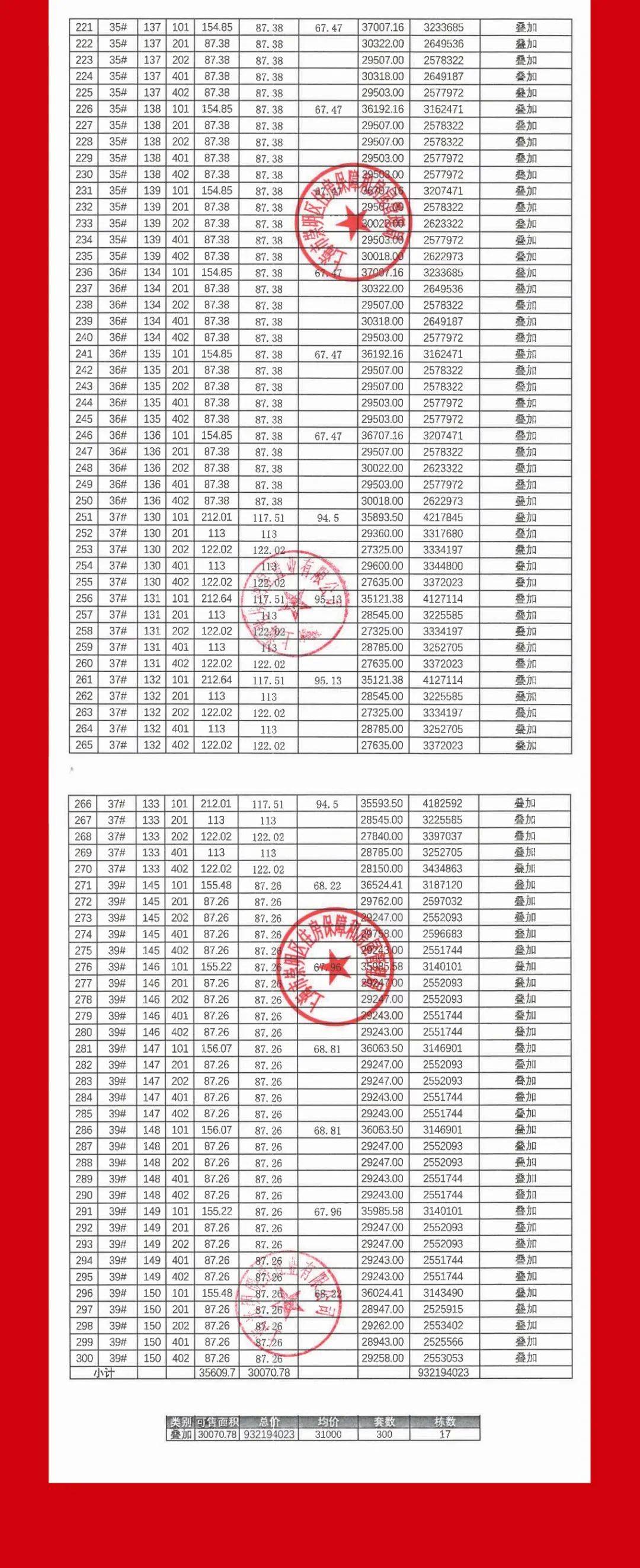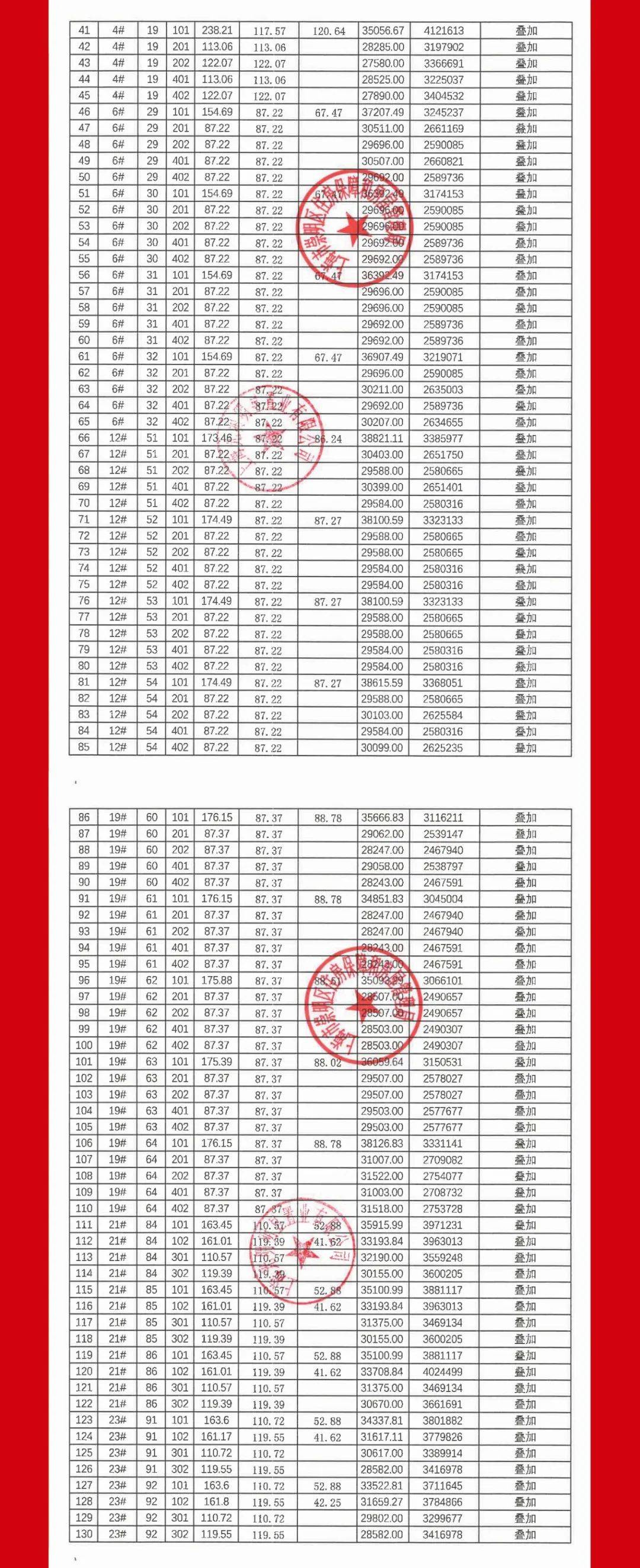 完整一房一价表