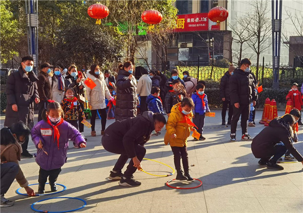 活动分为两个环节,首先由莲花社区红莲园艺术团乐器合奏《喜洋洋》和《滨湖春晓》,随后六项亲子互动小游戏逐一登场。“我最摇摆”“乐高射手”“蹦一蹦”“你投我接”“两人三足游戏”“小脚踩大脚”……现场气氛热烈,居民乐在其中。