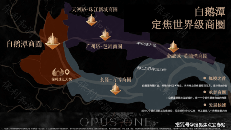 今年3月,白鹅潭官宣扩容,以200万㎡的体量,登顶广州5大世界级商圈之首,既是环珠江经济带ZUI后一片可以大规模连片开发的土地,也是除了珠城外,惟一拥有重奢商业的商圈,是未来广州城市发展的方向。