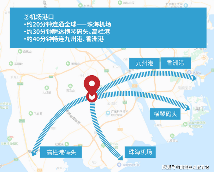 ⑥珠海机场(40分钟车程):机场扩容设双航空楼打造花园式空港,建成后可保障2750万旅客吞吐量,打造大湾区珠江西岸航空枢纽