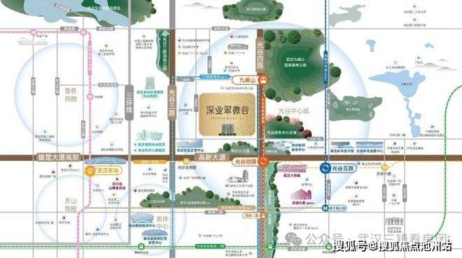 【深业翠微谷】毗邻高新大道与光谷四路,占据万亿级经济命脉与生态景观发展的"黄金十字轴芯",繁华与自然交汇地