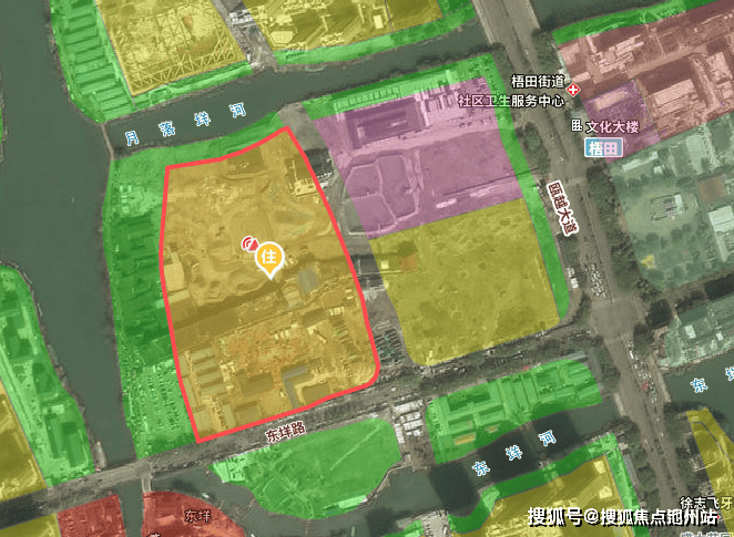 西侧为公园绿地(规划)、温瑞塘河、梧田老街、宏地·南塘府等。