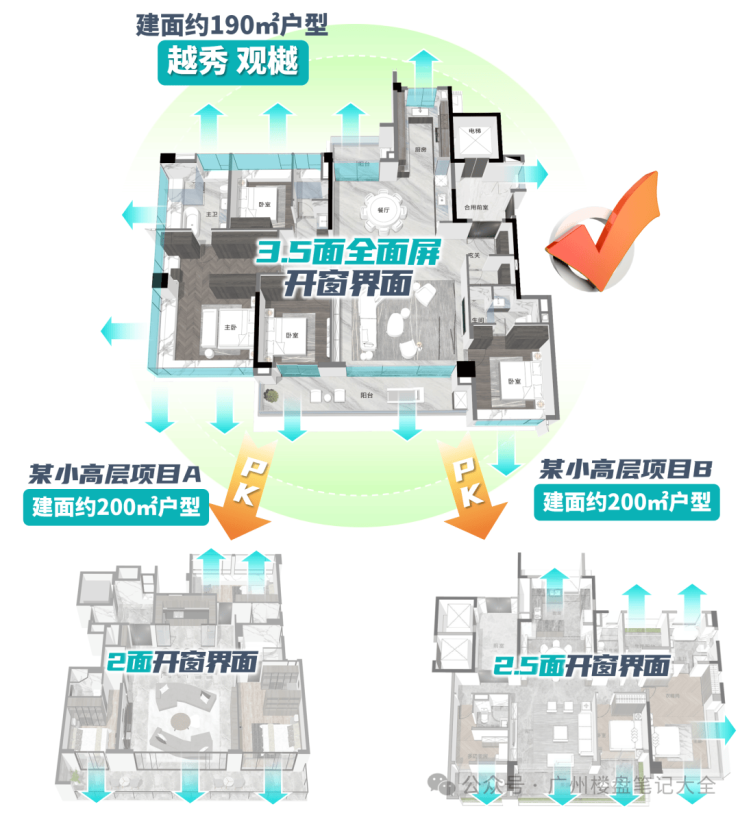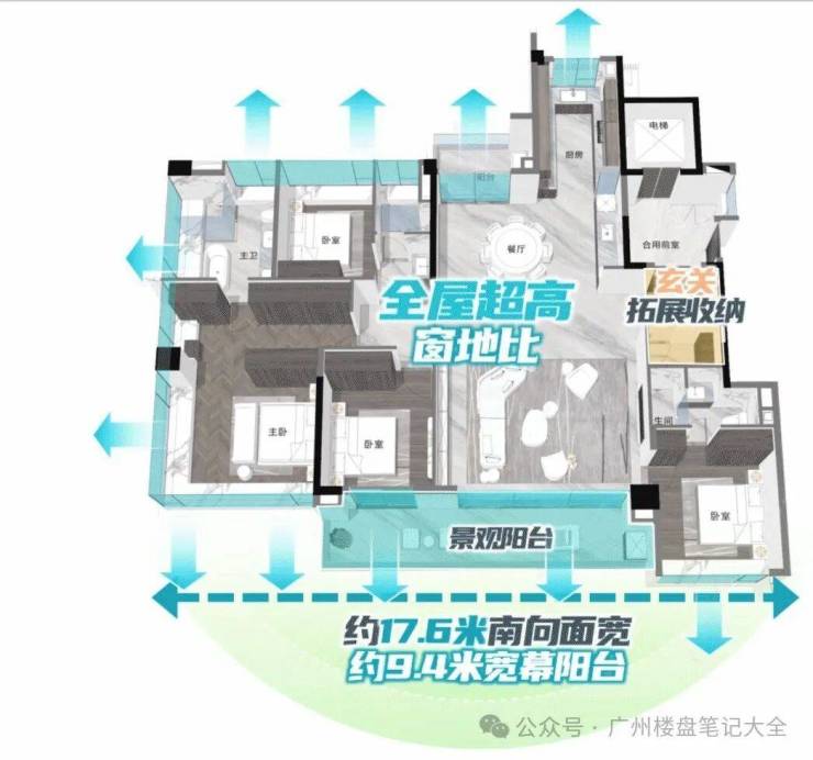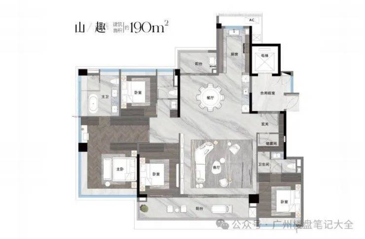 190㎡-四房两厅三卫——约17.6米南向面宽·9.4米南向景观阳台·家族式社交大方厅
