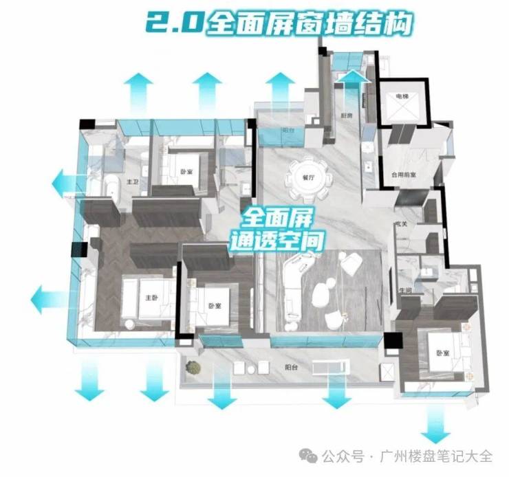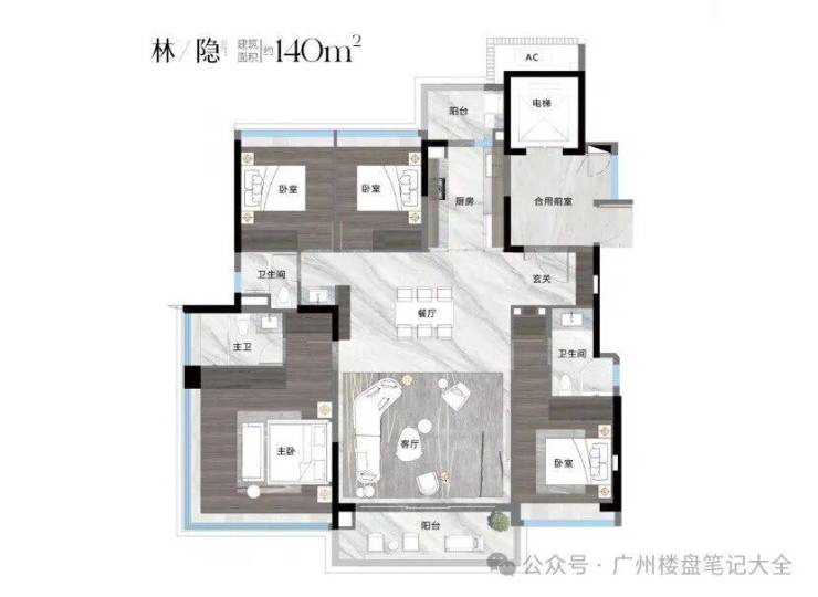 140㎡-四房两厅三卫——板式设计·双套房·南北对流双阳台