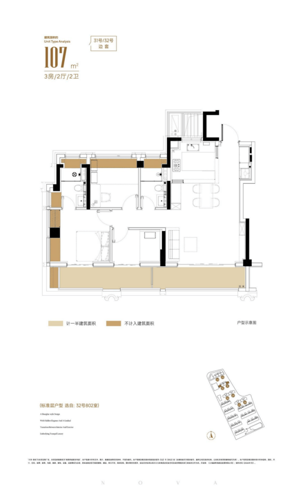 大华星屿建面约107㎡户型南向2个大阳台的合计面积接近16㎡,远超新规标准。