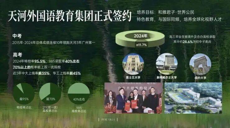 配建学校:天河外国语教育集团(已签约),小学阶段既可接触国内教学模式,亦提前接触外语基础,为片区教育「补充」合适的拼图。