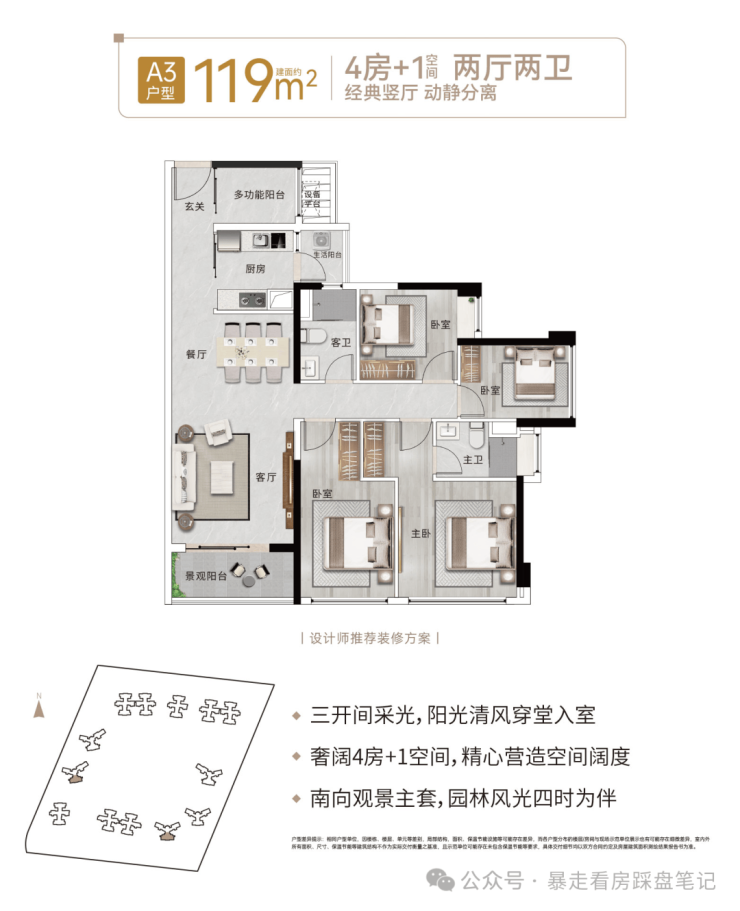🔅约76-88㎡3房+1空间、119-194㎡4房+1空间至五房,正南向阳光户型,+1空间更实用。