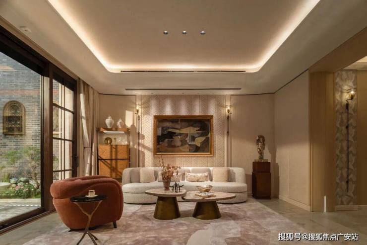 轩敞开阔的厅堂与宁静私密的私家花园,通过大面积的落地窗无界相连。无论是举办一场热闹的亲友派对,还是家人间的闲聚品茗,都能尽享自然与惬意,让室内外的界限悄然消融。