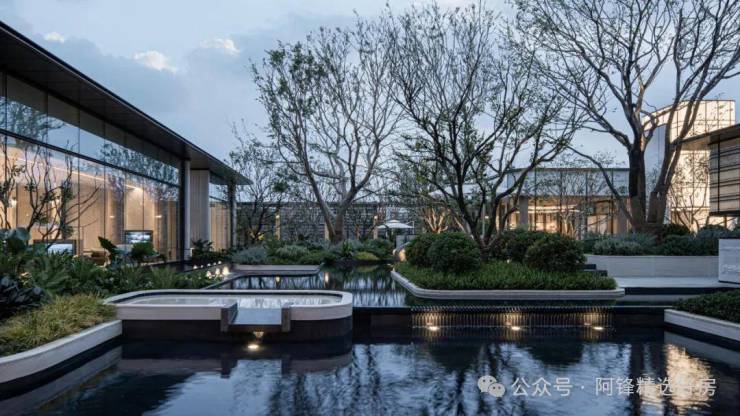 近1000方的水景空间,结合眼前的百年朴树王,让业主们时刻收获空间质感肌理带来的尊崇感。