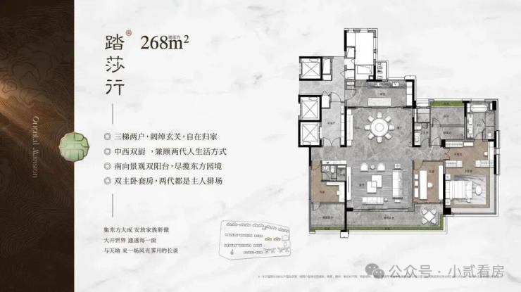 我们再来看看此次加推的268平的大面积户型,作为项目的旗舰,暗藏着哪些巧妙的设计?