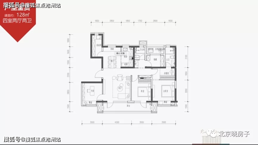 南向面宽6.6m,设有宽阔阳台,南向主卧飘窗设计;