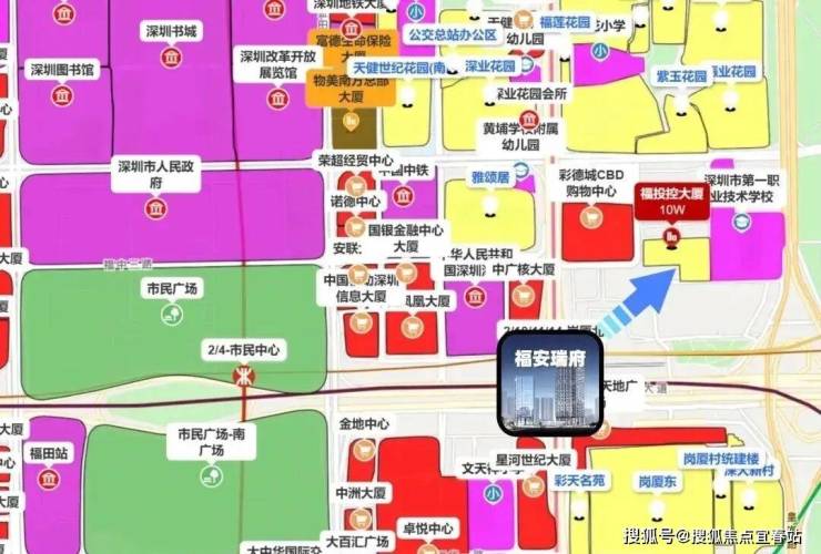 区块价值:南侧临近深圳城市主干道深南大道,是深南大道旁又一地标性建筑;东侧临近福彩路,俯瞰整个福田CBD;