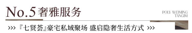 在『七闲馆』成功运营三个月之后,保利·维明天珺深度调研大量豪宅业主的生活方式与需求,对标奢华酒店,以尊崇服务致敬隐贵的奢雅格调,搭建『七贤荟』私域社交聚场,将场景力与服务力有机融合,打造“礼贤雅宴荟、传承阅读荟、东方雅集荟、赏味星馔荟、禅茶香茗荟、她力量太太荟”利达豪宅私域聚场,致礼层峯生活品位。石门隐贵在享受专属定制服务的同时,还能结识到投契的邻居,或是生意场的合作伙伴,实现资源的流动,成就豪宅影响力。