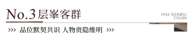 以品位达成共识,以格调峯聚维明,保利·维明天珺已成交客户有很多鲜明共性,他们是身居高位的当局者、是驰骋文化领域的潮涌者,约70%以上为决策者、私企总裁以及财富新贵,近20%以上的为教育、银行、医疗等行业的新知贵菁英,他们具备高素质和审美视角,更追求精神世界的满足。