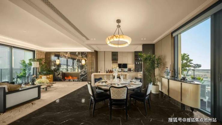 高层样板房设计以“文化交融”为内核,融合东方美学意境与西方现代极简主义。居住空间主色调通过低饱和度处理避免视觉冲,通过岩板、木饰面的材质对话,将地域文化符号转化为空间细节。景观设计通过引水入园、选用本土植物等策略,实现与周边滨河绿廊的自然融合。整体项目以现代东方为骨架,从杭州的自然意象中汲取灵感,以细节与工艺致敬厚重绵延的杭州风华。