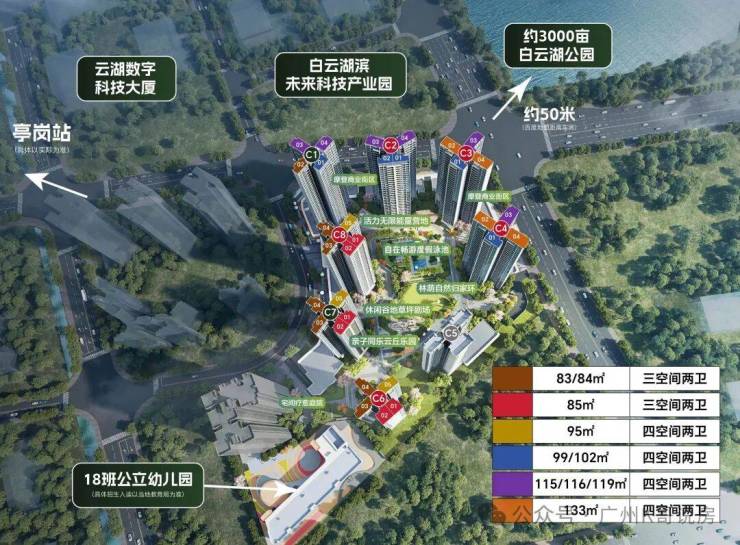 项目距离白云湖实际距离仅200米,约3000亩水体面积,是广州城央最大的人工湖,近10公里的绿茵跑道,业主都可以无缝享受,在家里就可以眺望白云湖的湖光风景。