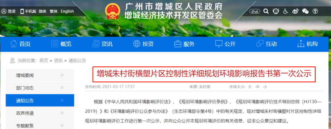 就在近日,广州市增城区人民政府网就公示了,增城朱村街横塱村片区控制性详细规划环境影响报告书。