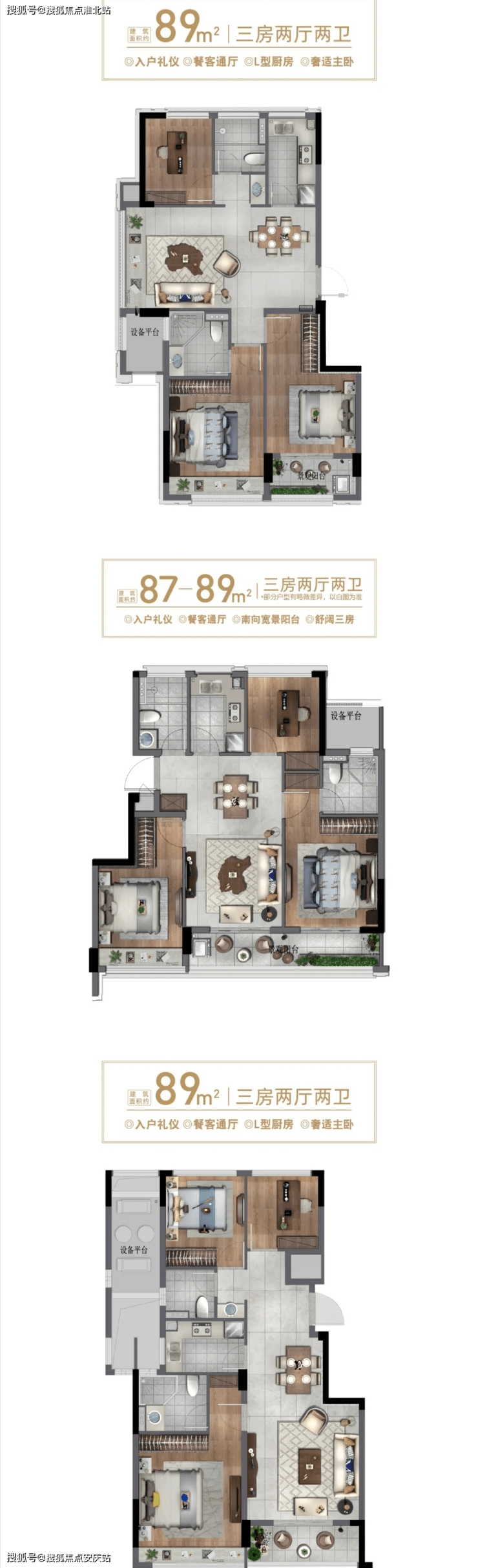 遵循精致实用原则,用心缔造精致生活,建面约89㎡当红主角,一体餐客、主卧套房、观景阳台、浪漫飘窗、百变书房等空间配置,一应俱全。