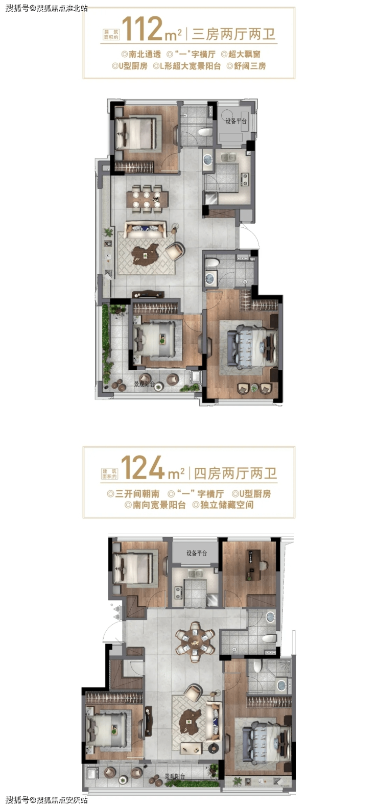 不仅有精致的小户型,更有尺度先进的大户型,建面约110-124m²宽境墅品,以一字横厅,奢适主卧,南向阔景阳台,U型厨房等奢阔配置,延伸无限的从容居境,承载全家人的幸福生活。
