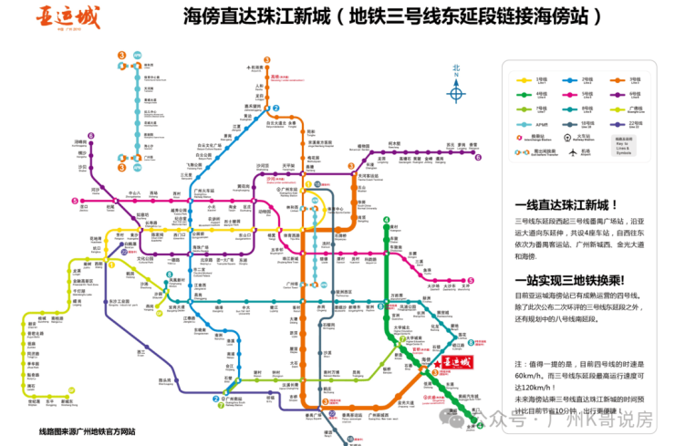 还有3号线东延段海傍站,始发站直达珠江新城,4站番禺广场TOD,5站达南村万博CBD,执掌番禺2大商务区、速达天河/荔湾CBD。