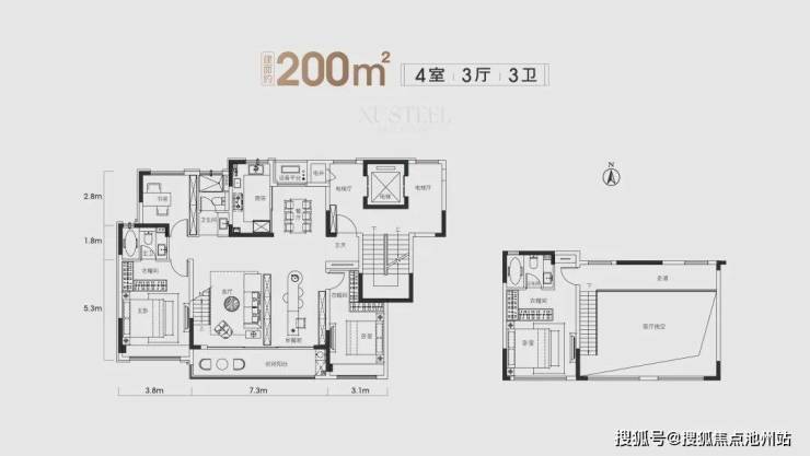 棠颂在153㎡户型做了越级升级,挑高约6.2m,高低错落,更显生活气度。并且拥有约100㎡可利用空间,其中夹层可利用空间约27㎡,露台可利用空间约70㎡,给生活更多灵活巧思的空间。