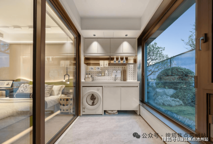 系统化全屋收纳:从玄关可容纳行李箱、球具的“800库” ,到厨房按“取-洗-切-炒”动线设计的博洛尼定制橱柜(含碗碟拉篮等),再到卫生间内置美妆冰箱的镜柜,每一类物品皆有归处。收纳,从此成为一门优雅的生活艺术。