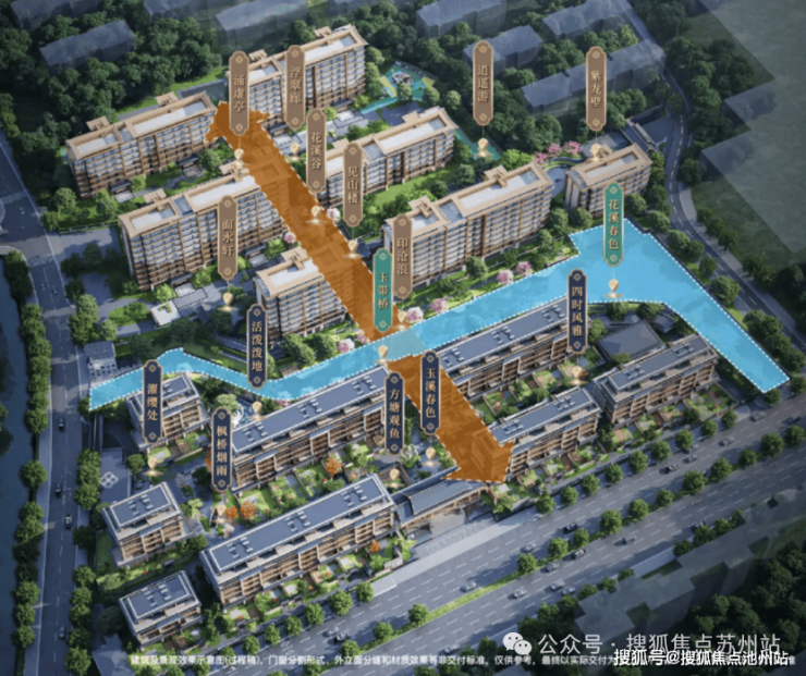 园林,是生活向自然的诗意延伸。 “一轴一环两园十六景”的格局,是对苏州古典造园艺术的当代转译。约1800㎡中央水域与蜿蜒的滨河带,构成了社区的生态蓝脉。