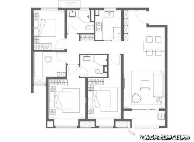 4.全能黄金户型:面积段覆盖刚需改善,设计科学,功能齐备,实用率高。