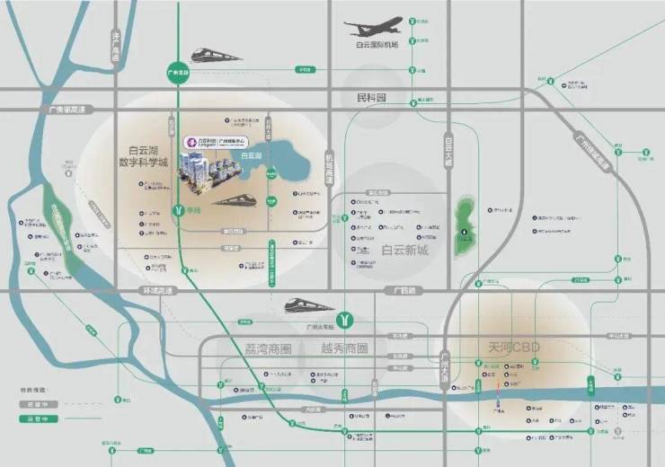 3站地铁抵达亚洲最大铁路综合枢纽——广州白云站,20分钟可达白云机场;