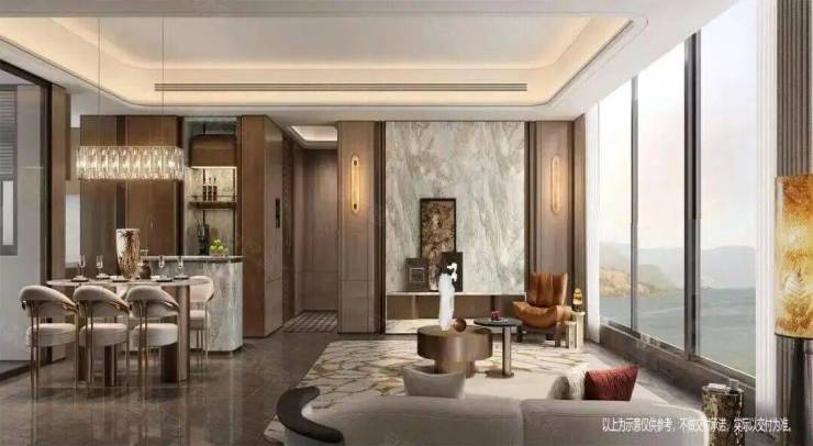 246㎡大平层,餐客厅直接干到约105㎡,还拥有近36米无边界三江交汇观江面,采光面、景观面绝了!新年烟花,在家就能看,妥妥的最佳专属观景台。