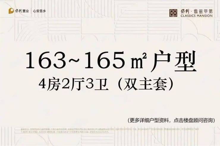 产品方面 保利·翡丽甲第将建设5栋超高层住宅,高度在56-58层之间,主打建面约170-255㎡的大平层,采用超新规设计,得房率最高可达130%。