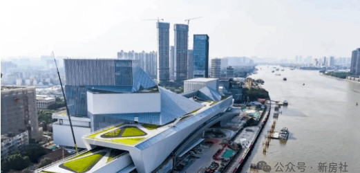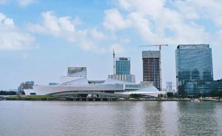 约800米极宽江面,更可瞰约2公里滨江绿地公园带和CBD繁华天际线,以珠江之光,点亮一座城市的千年荣光,广东省重点文化工程“三馆合一”项目全面封顶,目标打造成为“广东艺术的新客厅”。