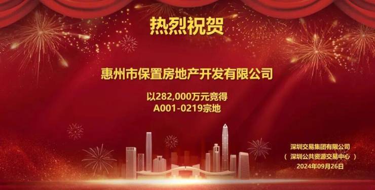 2024年9月26日,宝中A001-0219宗地开拍,共有9家企业报名,经过82轮激烈竞价,最终保利以28.2亿元总价拿下该地块。