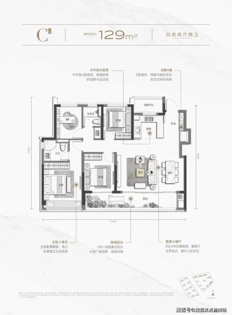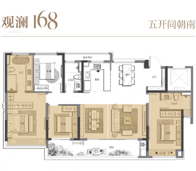 143㎡四房两厅三卫的设计,堪称改善户型“卷王”,在杭州内也是独一份。南向4.5开间,面宽约14.55米,空间尺度阔绰,且做到了双朝南套房设计,在140㎡左右的面积段中,实属难得。6米面宽大尺度横厅,搭配9米长的跑道式阳台,空间开阔感十足。