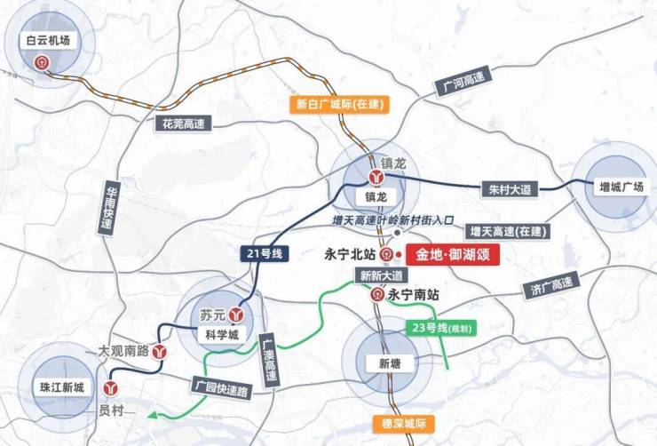 家门口还有永宁北站,通过新白广城际(预计年底通车),可以快速抵达白云机场、深圳机场,从而去到全国各地。