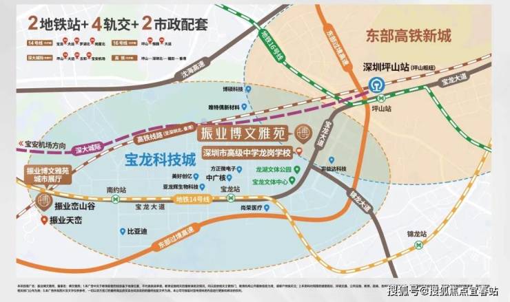 交通配套:14号地铁线“宝龙站”距离约1.4公里,项目配建有公交首末站,可坐公交车直达地铁站,该线路是从坪山沙田开往福田岗夏北的快速线,设计时速120公里,3站到大运,8站到布吉,9站到罗湖,11站到福田岗厦北,用时41分钟。