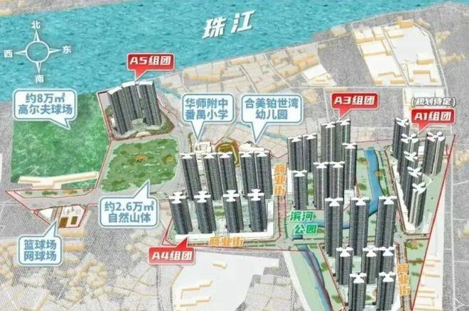 珠江铂世湾A2组团共规划8栋高层住宅,层高26-47层,总户数约5000户,容积率3.3,绿化率35%,户均绿地面积超30㎡,整体居住密度适中,兼顾城市便利与社区舒适度。