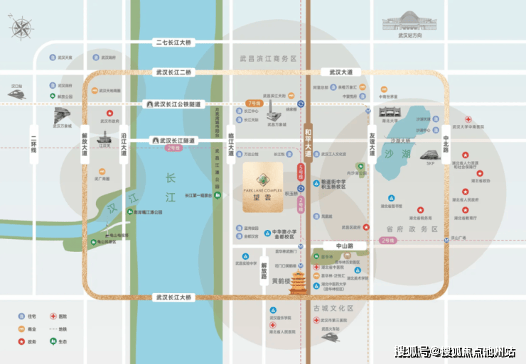自驾方面,项目紧邻和平大道,直通武昌滨江、徐家棚、青山等地,走武汉长江隧道、长江二桥去往汉口也非常便利。