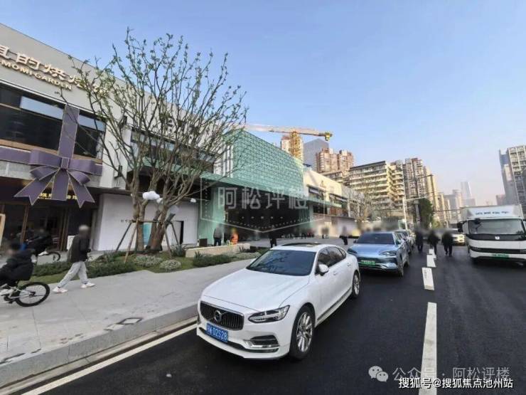 项目样板间开放现场,路边停了不少车, 更关键的是,商业街区的外立面基本做成,部分商业也呈现出来!