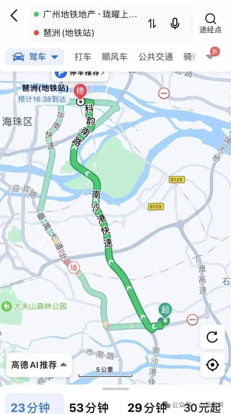 自驾的话也是非常方便,项目距离南沙快速港仅900米,附近还有亚运大道,接下来小何就给大家实测一下自驾或地铁通勤珠江新城、琶洲需要多久: